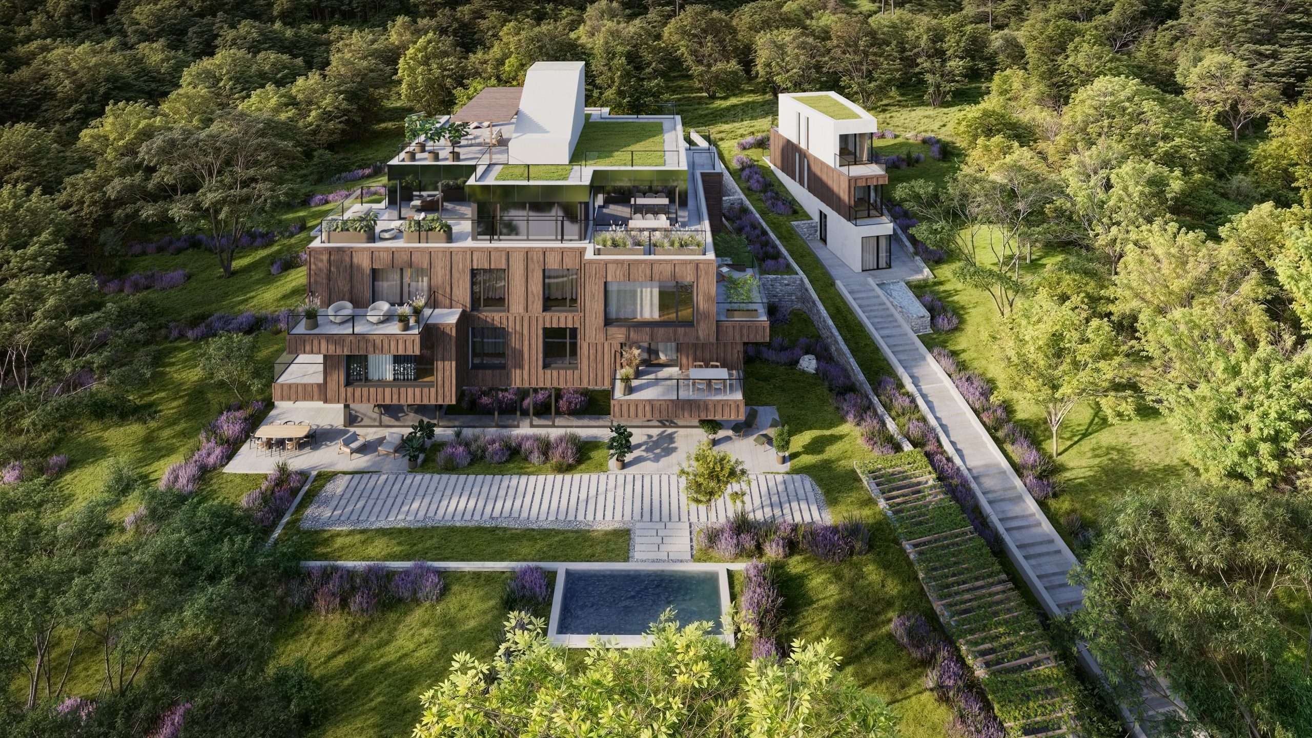 Ein besonderes Highlight: Jede Einheit mit Garten verfügt über einen privaten Pool, der exklusiven Rückzug und Erholung direkt am eigenen Zuhause bietet.